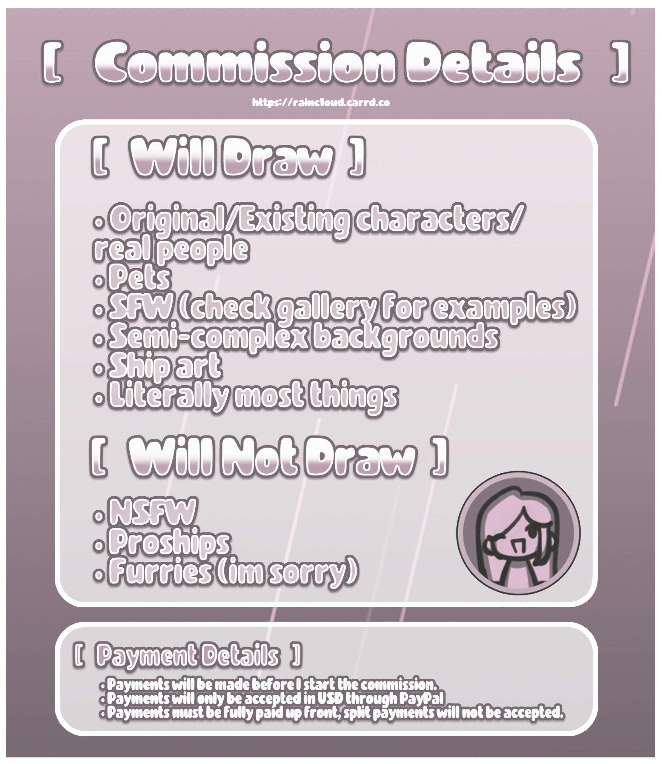 I'm sorry, I'm not offering these commissions right now! But stay tuned for the future!